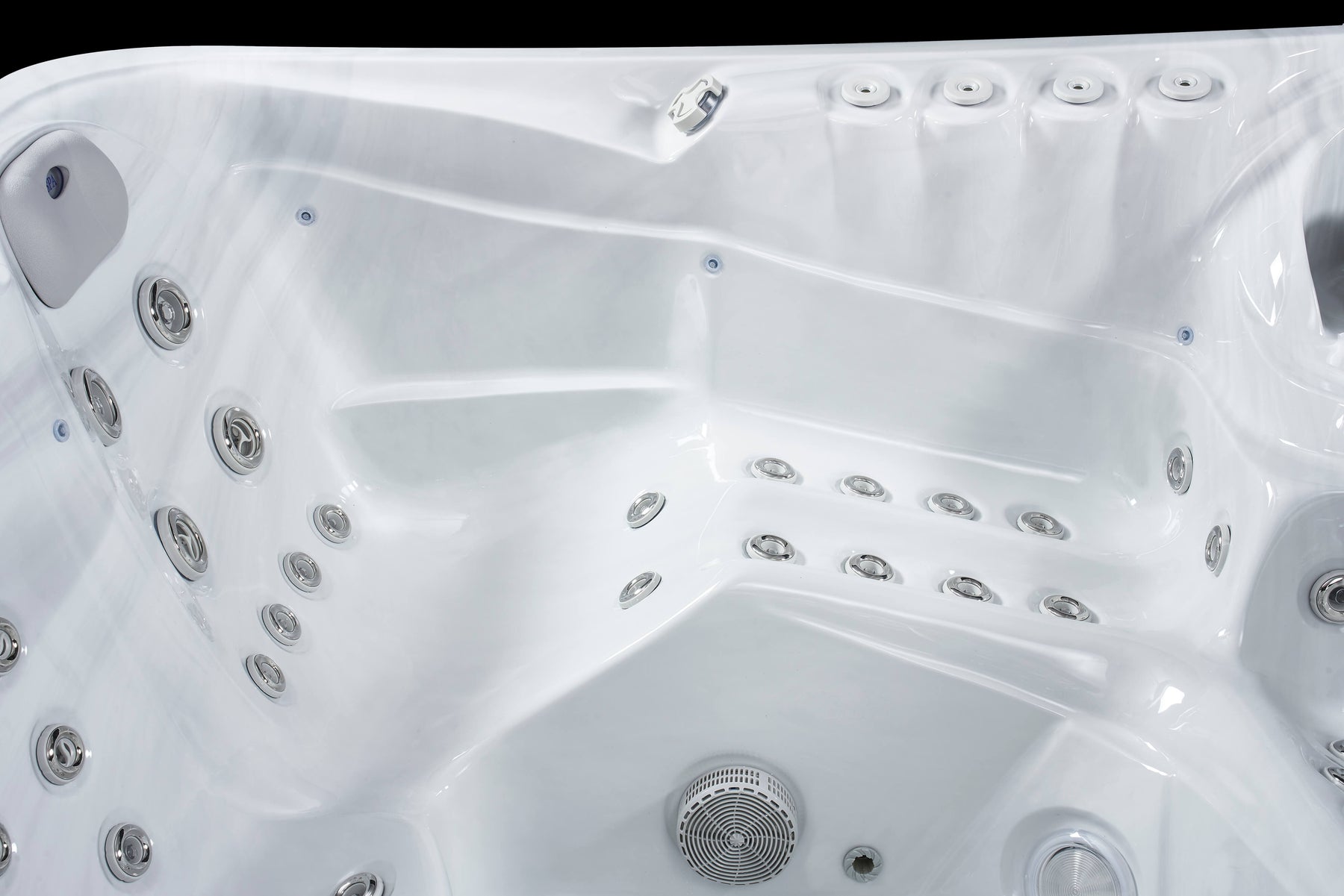 The Luso Spas The 7000 Hot Tub is a compact, powerful, and feature-packed 5-person spa built to deliver exceptional hydrotherapy and relaxation without the premium price tag. Designed for comfort, entertainment, and energy efficiency, it combines 86 stainless steel jets, four powerful pumps, LED lighting, Bluetooth speakers, and a waterfall – all wrapped in a sleek, durable shell finished with American-made Lucite Acrylic.