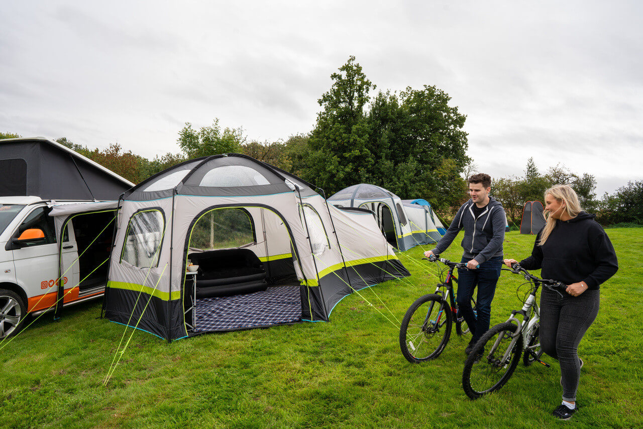 Unlike many campervan awnings, the OLPRO Hive Campervan Awning includes a darkened two-berth sleeping pod that attaches to the side. This keeps your main living space free while offering a comfortable, private sleeping area large enough for a double air bed. The inner tent can also be removed to create even more daytime living space.